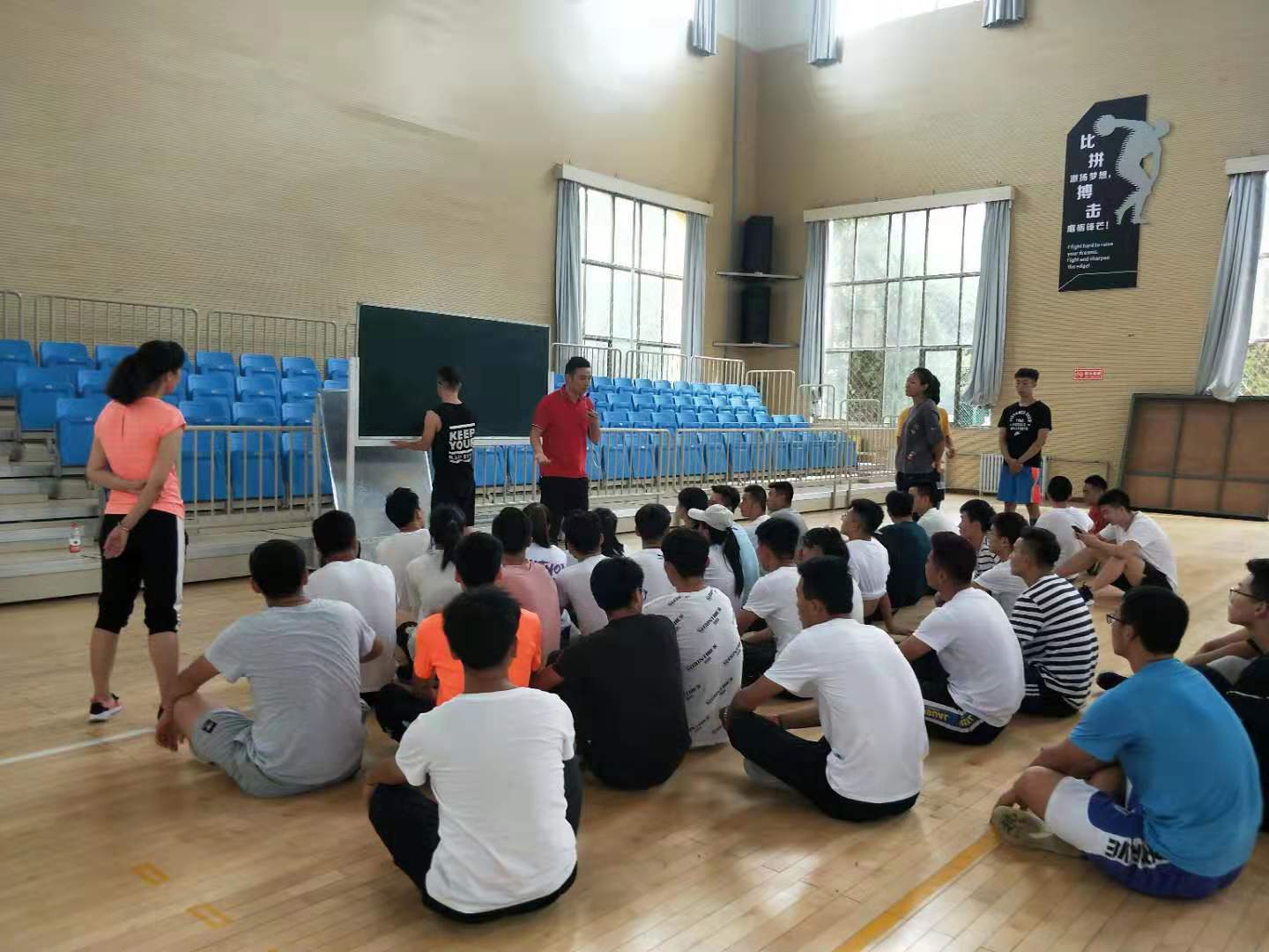 随着社会体育指导与管理专业获批为甘肃省一流专业,我院领导更加重视该专业的发展和提升,找特色、谋发展,创造性的打造人才培养质量。根据社会体育指导与管理专业的培养目标、课程设置和社会需求,开学初,我们聘请到校外体育健身俱乐部资深教练员为我院2017社会体育指导与管理专业学生集中授课,我们先后请到动鸣国际体育健身俱乐部负责人姚天明、西安瑞德健身学院院长苏林和教练文豪老师。