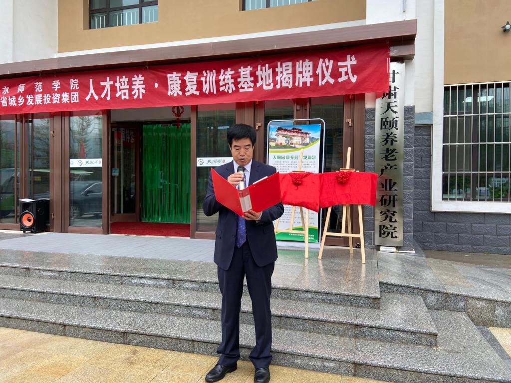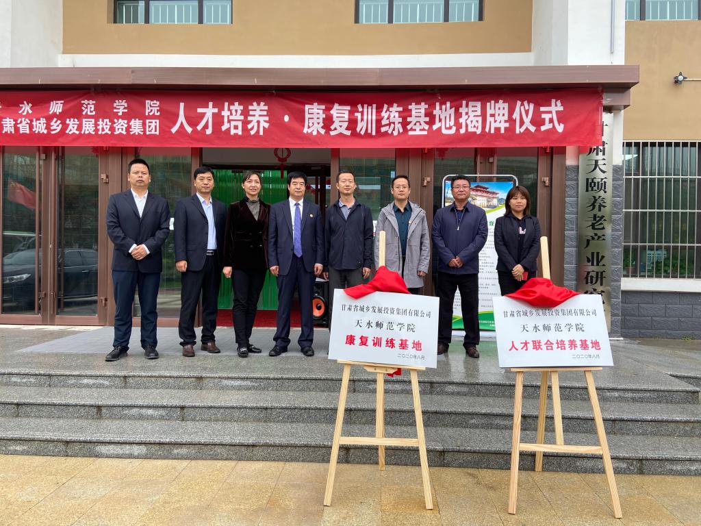 9月25日上午,天水师范学院党委常委、副校长汪聚应一行前往天水麦积全国综合养老示范基地举行“天水师范学院与甘肃省城乡发展投资集团人才培养·康复训练基地揭牌仪式”,国际交流合作处,甘肃省残疾人体育与运动康复研究院,9728太阳集团负责人陪同。