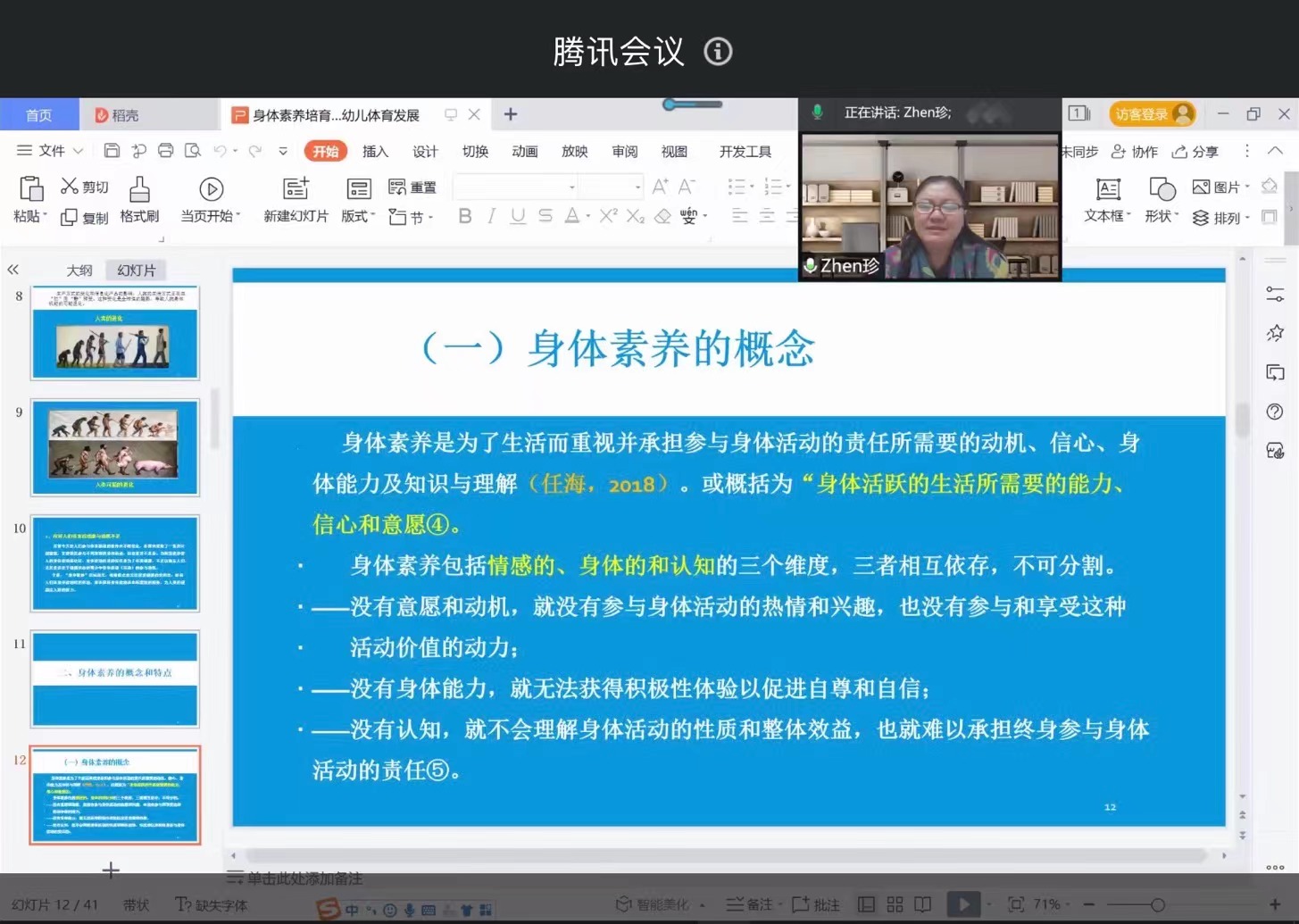 12月19日下午15:00-17:00,首都体育学院原副校长,天水师范学院第四轮重点学科“体育学”首席专家,教授、博士生导师王凯珍应邀为9728太阳集团师生作题为“身体素养视域下的幼儿体育培育发展”的学术报告,会议采用腾讯会议线上方式举行。