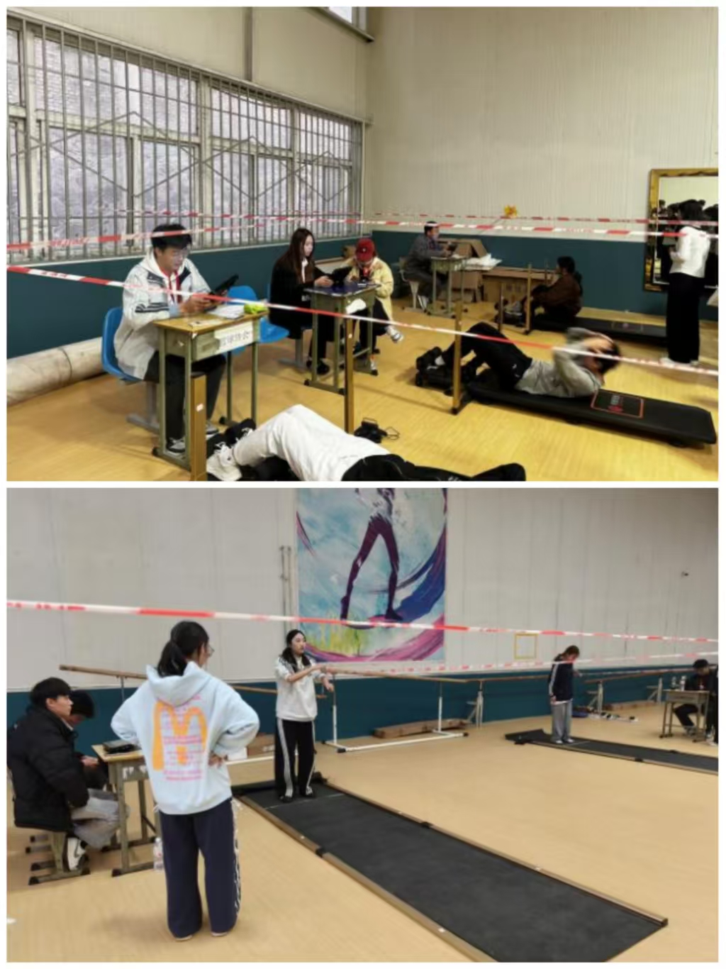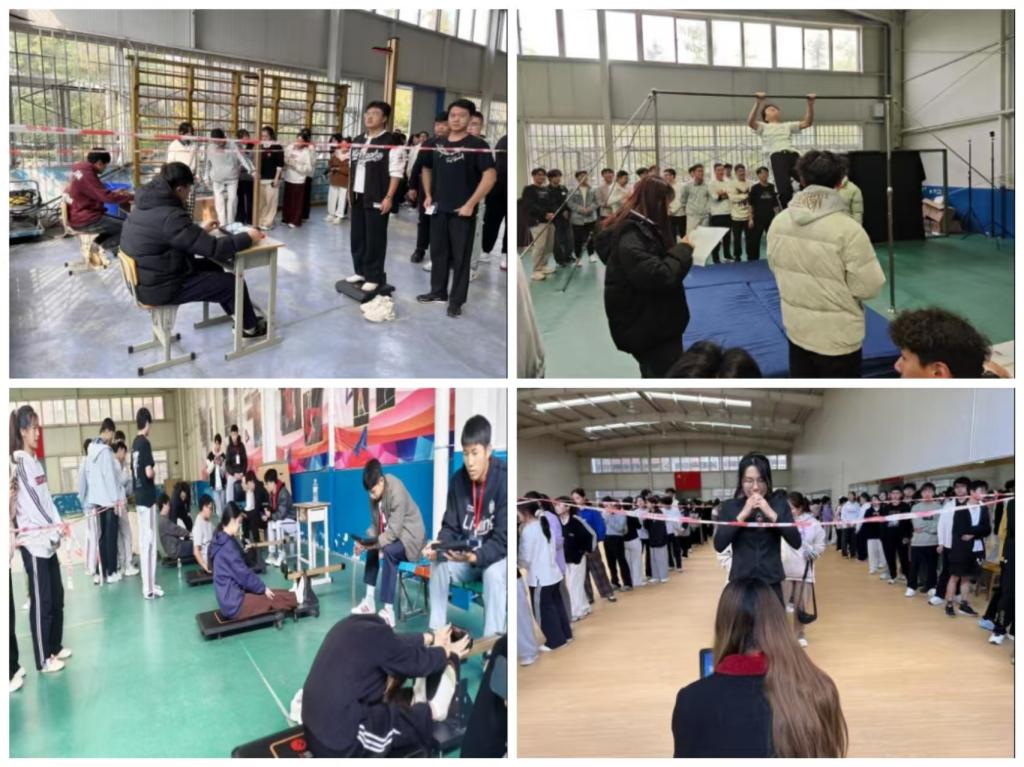 测试场地按项目科学分区:室内进行身高体重、肺活量、坐位体前屈、仰卧起坐、立定跳远等项目;室外安排50米跑、长跑及引体向上等项目。所有设备提前校准,数据录入实时严谨。工作人员态度认真,引导学生有序参与。同学们全力以赴,在测试中检视自我,在挑战中激发锻炼意识。