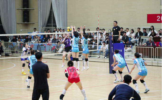 焦点战在兰州大学和南昌大学代表队之间展开。两队运动员以满腔热情投入比赛,她们团结协作,默契十足,在紧张激烈的赛场上,用汗水和努力定格了一个又一个令人难忘的精彩瞬间。每一次起跳,都凝聚着拼搏的意志与青春的活力;每一次挥臂击球,都传递着不屈的力量与坚定的勇气;每一次队友间的击掌鼓劲,都彰显着自信与团队的荣誉。现场热烈而和谐的气氛感染了每一位观众,掌声与喝彩声此起彼伏。经过激烈角逐,最终兰州大学代表队以3:1的比分战胜南昌大学代表队。