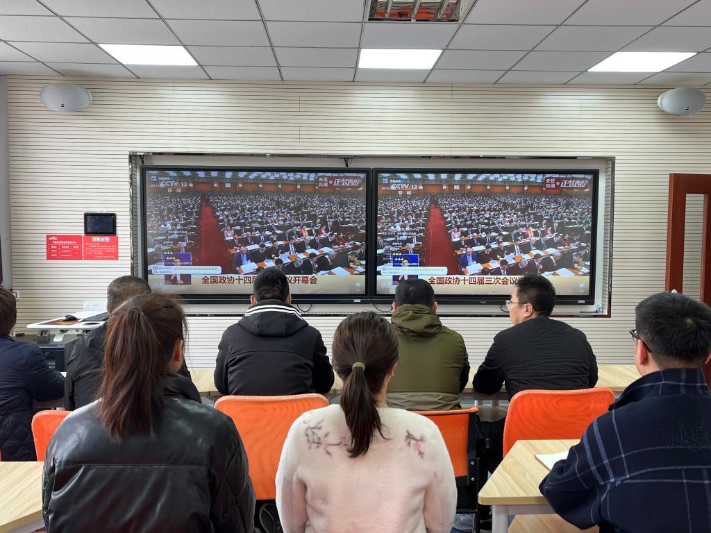 3月4日,9728太阳集团全体师生在2号教学楼318教室观看十四届全国人大三次会议开幕式。