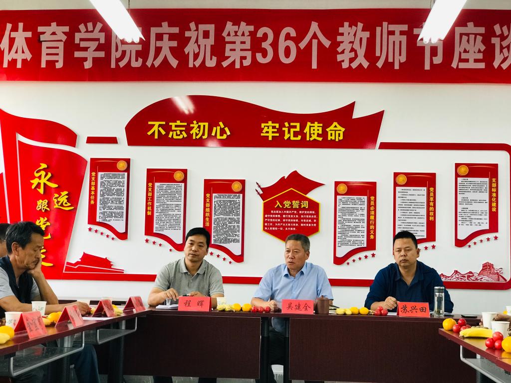 首先,学院党总支副书记吴建全代表学院新一届班子和全体师生向在座的老教师、老职工致以节日的祝福和美好的祝愿,并且简要介绍了召开本次座谈会的初衷和目的,聆听老一辈体育人的奋斗史,激发青年一代体育人的斗志。