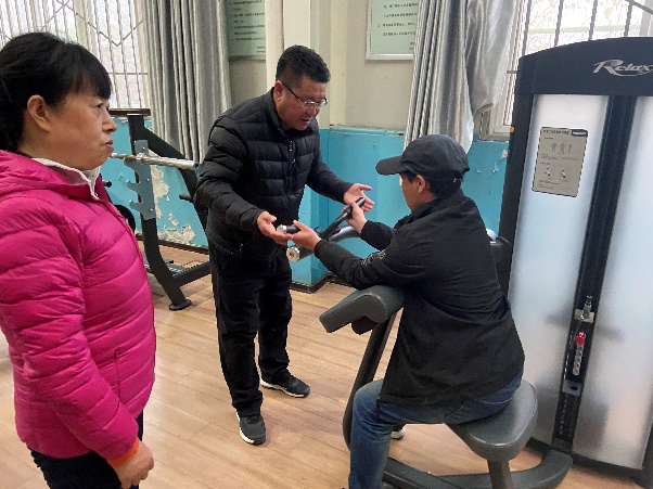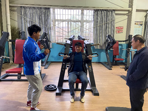 在残疾人体育运动与康复实践授课中:魏玉琴老师携7名学生围绕创编的《残疾人拉力带健身操舞》和《残疾人全身健身操舞》展开教学,重点通过借助拉力带的辅助作用,使残疾人的肩部、颈部、腰部起到良好的运动康复训练;而全身健身操舞则由下肢的34步组成,这对残疾人的全身活动起到了重要作用。陈玮老师选用自主创编的《轮椅健身操舞》,隶属徒手类健身项目,使残疾人在音乐伴奏下,融入多种时尚舞蹈元素为一体的有氧运动,重点对残疾人头、颈、肩、胸及腰等5部位的运动康复练习起到促进作用。段文义教授则通过我院健身房内残疾人体育运动与康复训练的专业性器械设备,进行悉心的指导和动作演示,这对满足残疾人业余时间内的体育健身、机能恢复、伤残康复训练提供指导与帮助。
