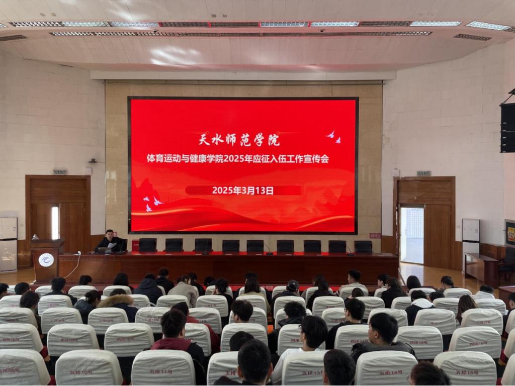 3月13日下午,我院举行了“落实工作部署 深化政策解读”为主题的2025年应征入伍政策宣讲会。学院分管领导、负责辅导员及学生200余人参加本次活动。负责辅导员领学了学校下发的最新文件<天师院办发〔2025〕12 号>,对毕业生入伍、奖励、资助业务办理流程等政策内容进行了解读。2025年,我院将围绕“强化政治担当、荣誉转化动力、创新宣传动员、积极落实部署、力争优异成绩”这一主线扎实推进征兵工作。