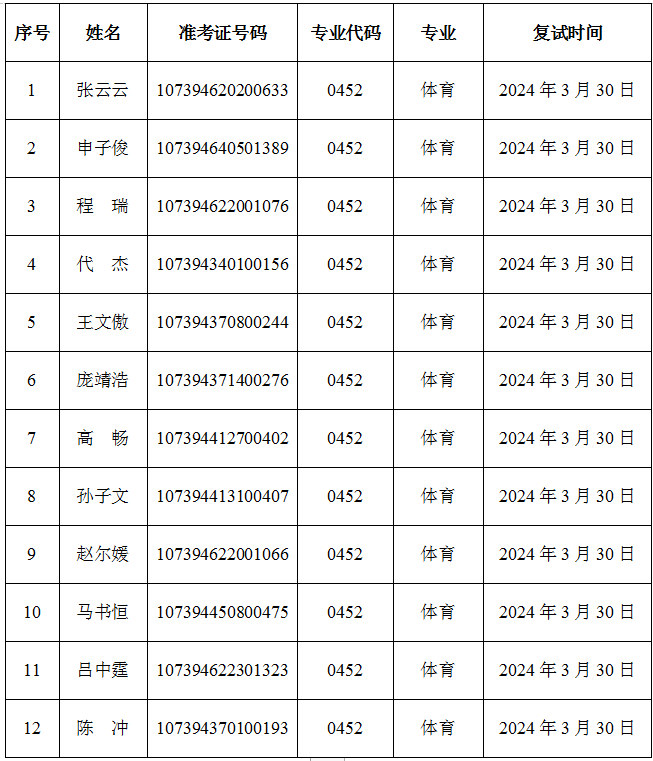 9728太阳集团2024年硕士研究生一志愿复试考生公示名单