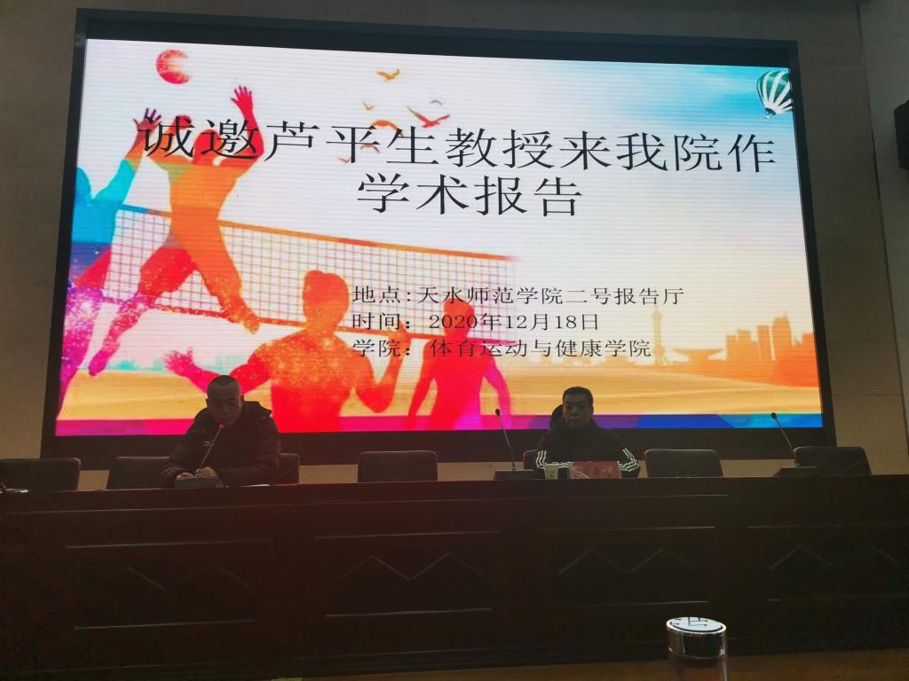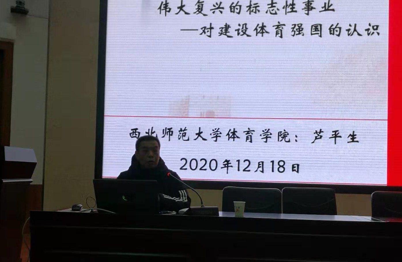 12月18日上午,西北师范大学芦平生教授应应9728太阳集团邀请,在学校二号报告厅作了题为《奋进新时代——让体育成为中华民族伟大复兴标志性事业》的学术报告。