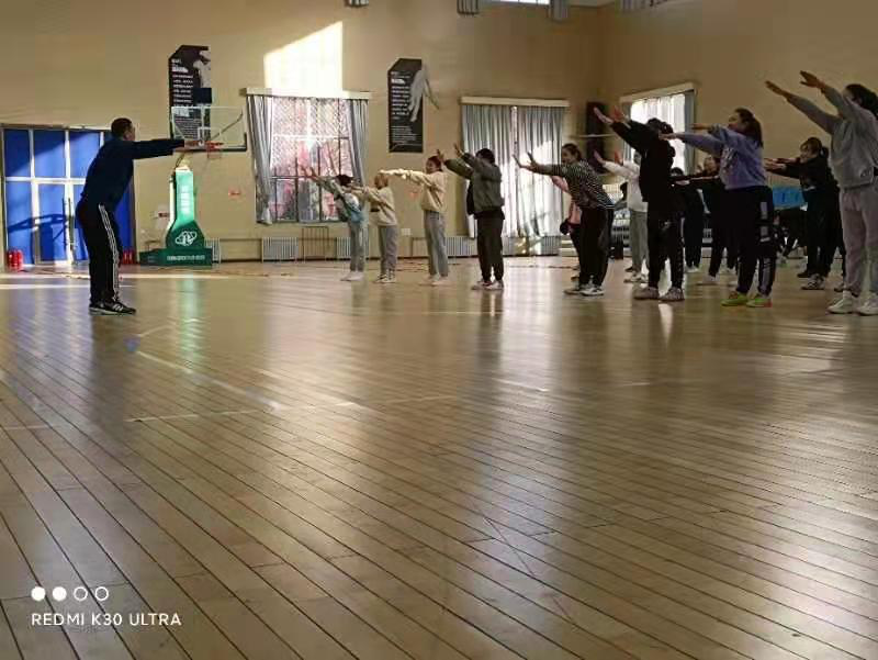 其次,在学校体育场馆内,以每十人左右为一组,进行分组练习操作。