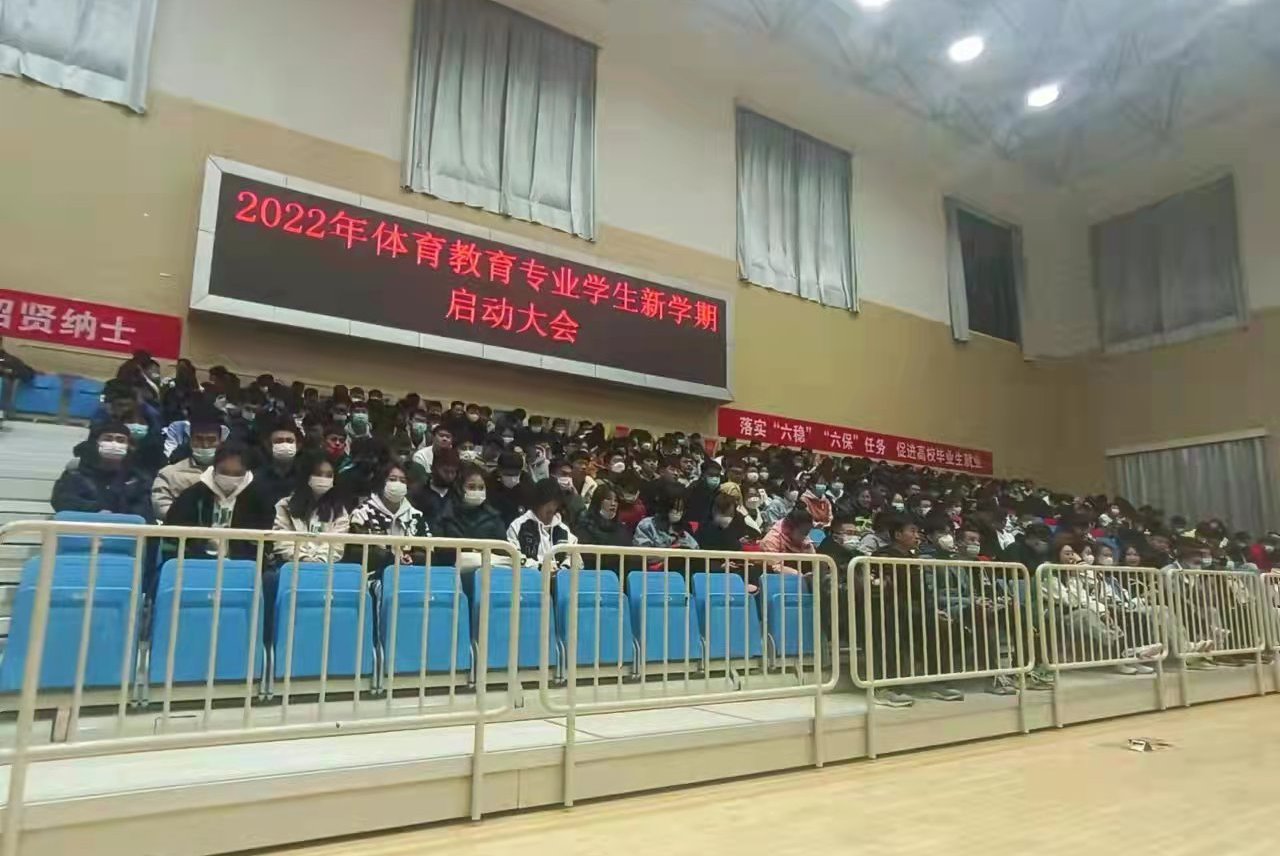 2022年2月28日晚上19:30,为了明确学习目标、强化学习动机,9728太阳集团体育系在学校体育馆内举办了“2022年体育教育专业学生新学期启动大会”。参会人员有体育教育专业4个年级的在校学生,以及各班班主任和体育学院部分院系领导,共计400余人。