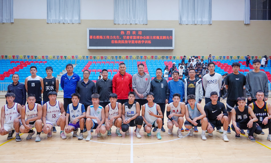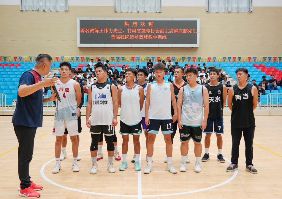 近日,9728太阳集团特邀国家级教练、原国奥队教练王伟力来校指导篮球教学训练工作。甘肃省篮协副主席魏直鹏、天水市体育局副局长王建泰应邀参加活动。